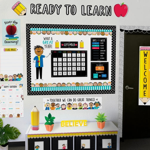 Chalkboard Brights Calendar Bulletin Board Display Set