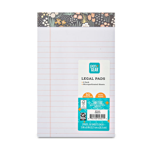 Fashion Junior Legal Pad 5" x 8", Wide Ruled, 50 Sheets of Paper Each, 2 Pack
