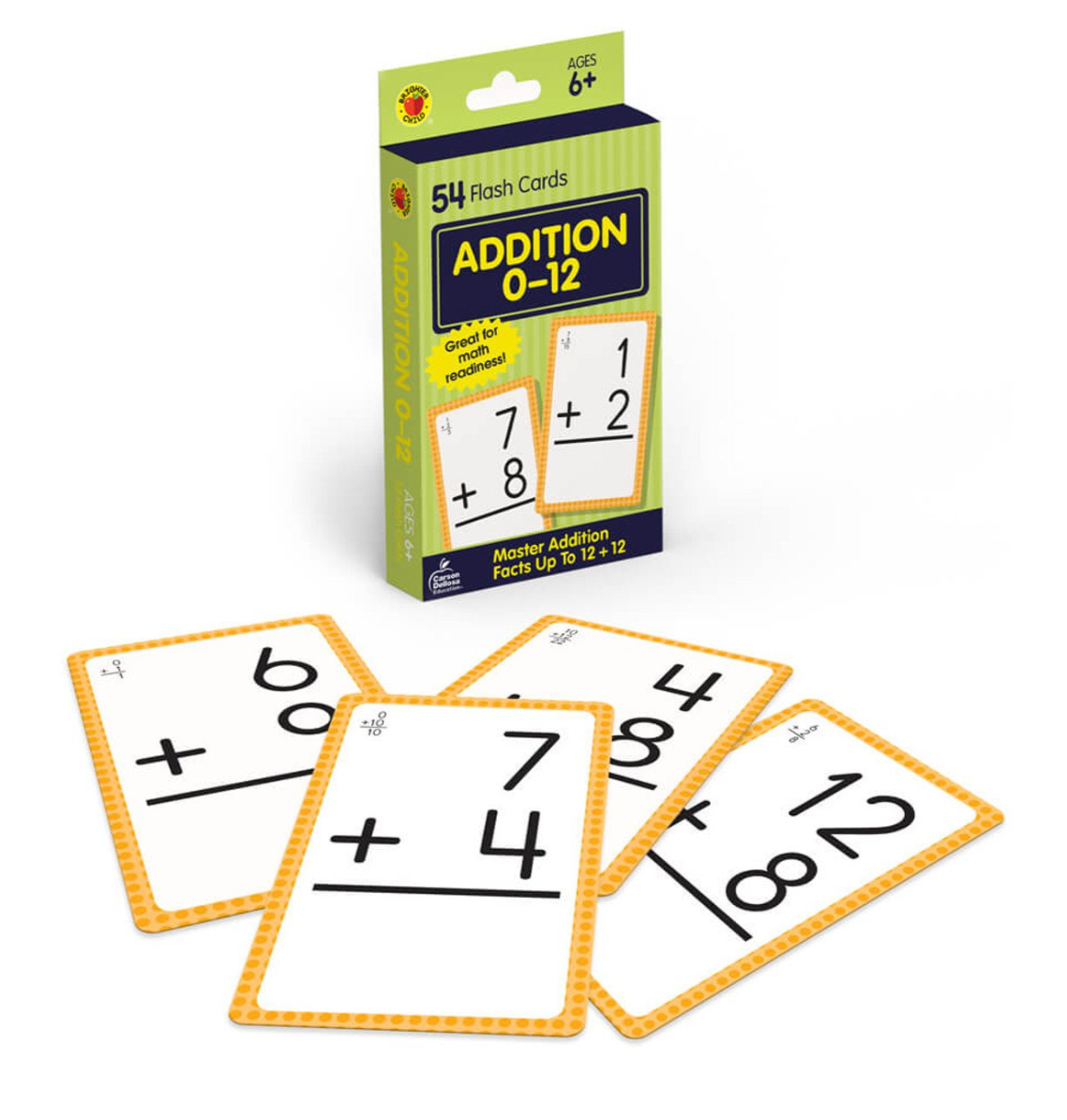 Brighter Child® Addition 0 to 12 Flash Cards offer children a fun and easy way to practice their addition skills. The set features 54 cards with two addition problems each, their answers on the opposite side. Bright, bold numbers are placed on a white background for easy reading, and a special card also offers creative game ideas designed to reinforce learning.