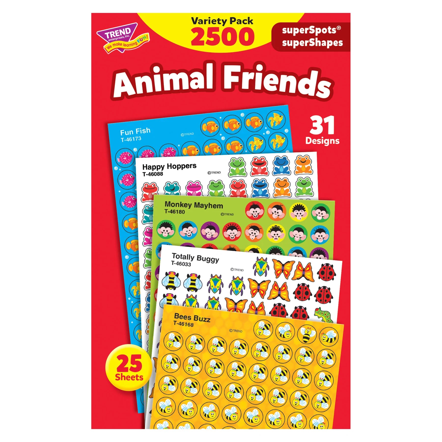 • 25 sheets include Happy Hoppers, Monkey Mayhem, Totally Buggy, Fun Fish, Bees Buzz