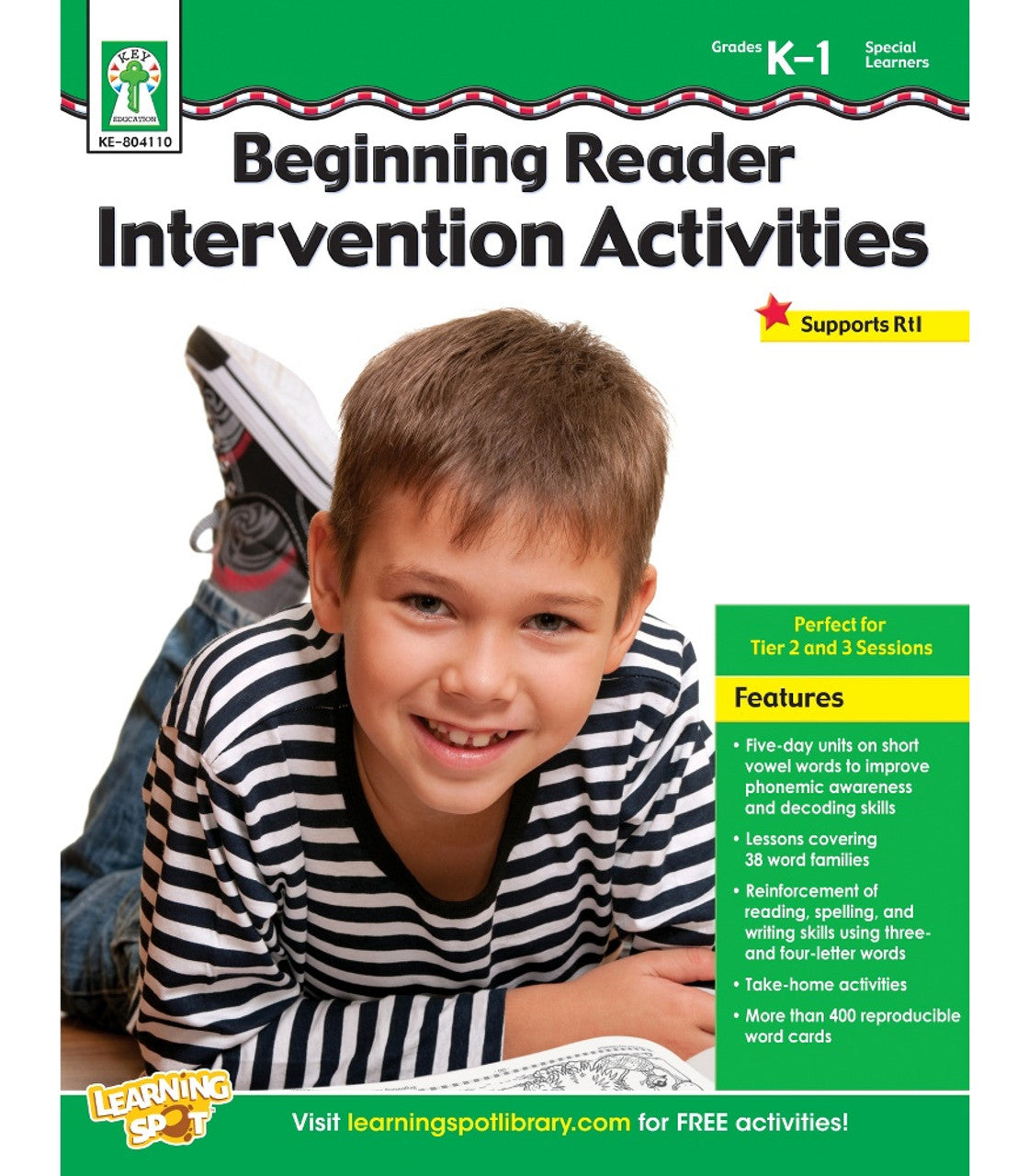 Beginning Reader Intervention Activities includes lessons covering 37 word families and is the ideal companion for reinforcement of reading, spelling and writing using three- and four-letter words. It includes multi-sensory activities, home-school connections, and over 400 reproducible word cards. Get beginning readers off on the right track with 160 pages of engaging intervention! Key Education products are intended to engage and educate young and special learners, as well as assist teachers in building a strong and developmentally appropriate curriculum for these children. The product line—comprised of teacher/parent resource books, photographic learning cards, and other activity- and game-oriented materials—is designed to assist in “Unlocking the Potential in Every Child.”