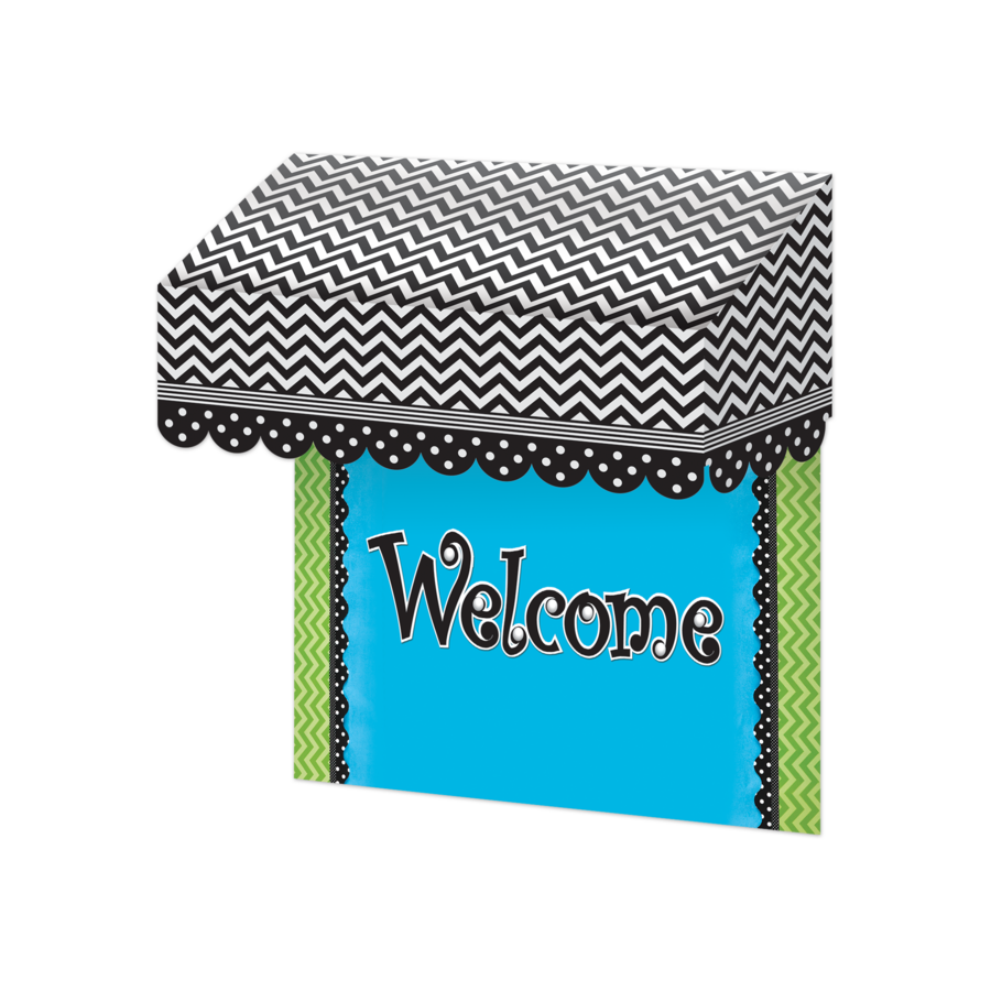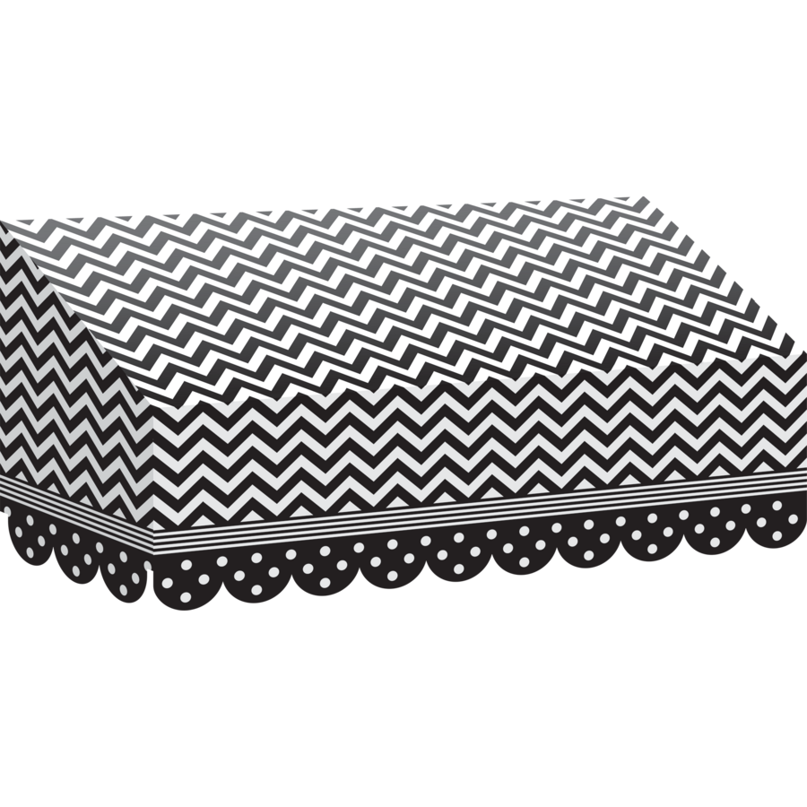 Give your classroom a glamorous makeover with this fancy Black & White Chevron and Dots awning. Mix and match your favorite patterns and colors to create the perfect themed classroom. Hang this sturdy awning over your bulletin boards and entryways, organize work areas, or make fun learning corners. Approx. 24” W x 12-1/2” H x 8 D.