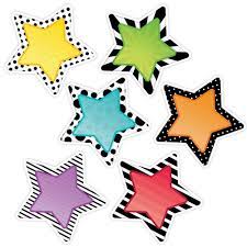 These Star 10" Designer Cut-Outs are a great combination of bright colors and bold patterns. Each large star features a brightly colored center (yellow, green, turquoise, orange, purple, or red) framed by a black and white dotted or striped edging. The large size makes these stars fun to use in a large space such as a hallway, a gymnasium, or an over-sized bulletin board. Put them back to back and hang them from the ceiling or in a window. These stars are perfect for use in a variety of classrooms and with students of all ages!