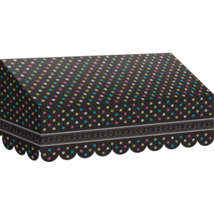 Give your classroom a glamorous makeover with this fancy Chalkboard Brights awning. Mix and match your favorite patterns and colors to create the perfect themed classroom. Hang this sturdy awning over your bulletin boards and entryways, organize work areas, or make fun learning corners. Approx. 24” W x 12-1/2” H x 8 D.