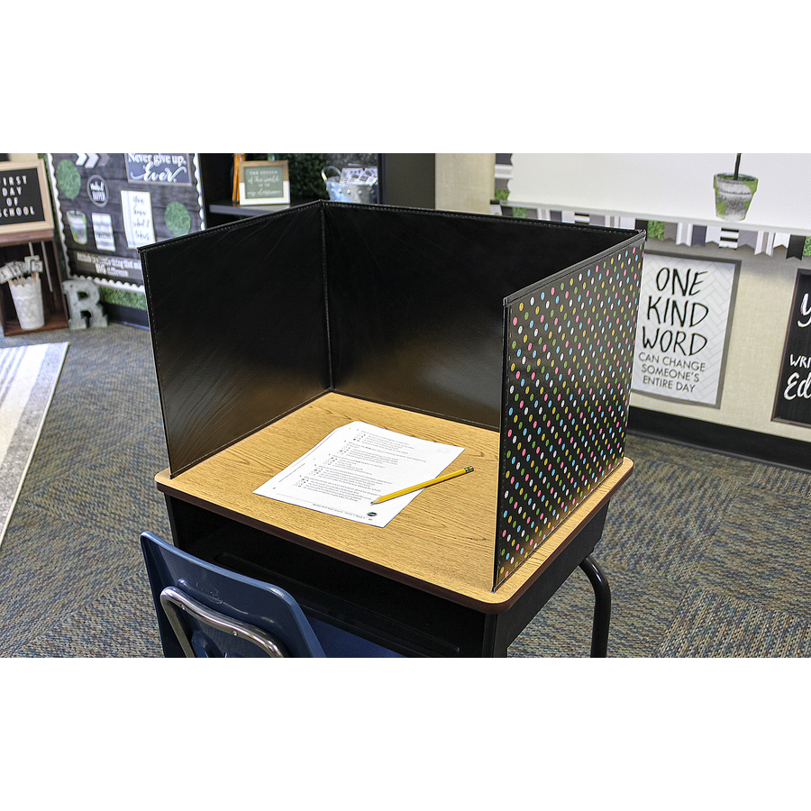 This durable designer Classroom Privacy Screen will brighten up any classroom and help students keep a positive attitude, even during test time! Ideal for reading, testing, or working on individual projects. The non-porous surface is easy to clean and can be wiped-down or sprayed with disinfectant to help prevent the spread of germs. 22" w x 16" h x 14" d.