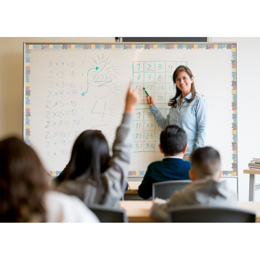 Decorate your whiteboard in a snap with durable, reusable magnetic decor! Use this perfectly placed patchwork border trim, featuring die-cut pennants to refresh your classroom. Add flair on other metal surfaces such as doors, desks, shelving, and bins. Cuts easily with scissors for the perfect fit. Includes 12 pieces per pack. Each magnetic border is 24" x 1½". 24 total feet.