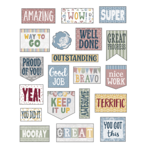 Celebrate a job well done with encouraging stickers in a cozy palette of warm tones and fun designs! Each sticker is acid-free & lignin-free and measures about 2½" x ½''. 20 designs, 120 stickers per pack.