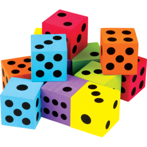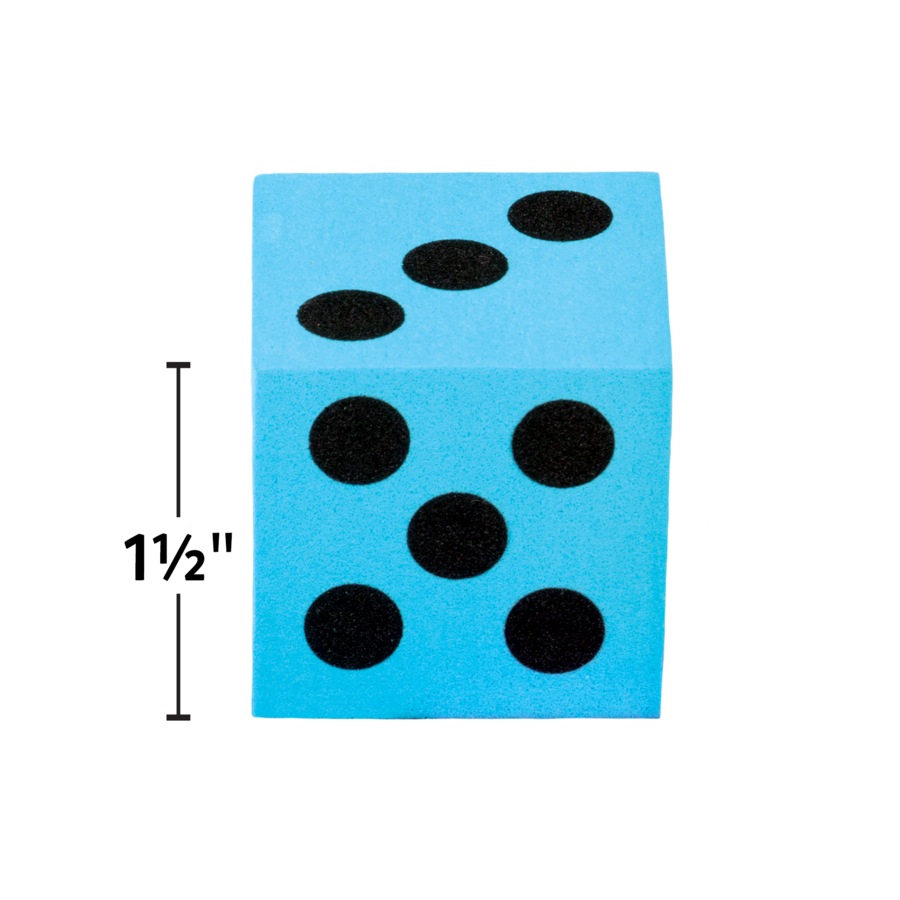 Learn about place value, math operations, and probability. Soft foam dice are quiet and durable. Choice of 6 colors. 1 1/2" cubes.