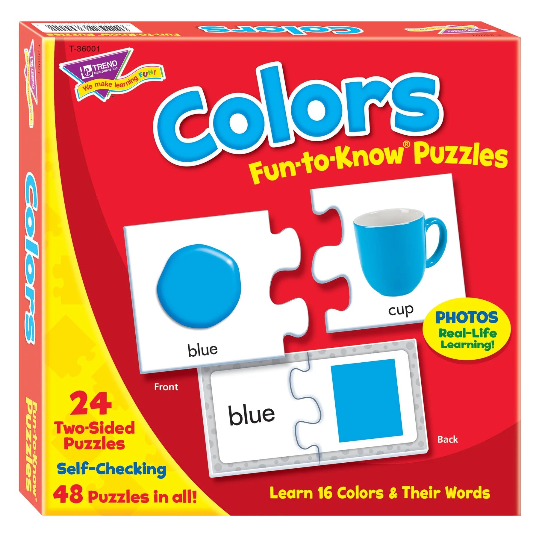 LEARNING PUZZLES KIDS LOVE – Two-sided ... twice the Learning FUN! These are great puzzles for kids learning the basics. Build vocabulary skills and identify 16 colors using photos of everyday objects. Self-checking pieces help children practice at their own pace, building confidence and achieving success. Bring hands-on practice to learners in early childhood classrooms, care facilities, homeschools, and to supplement distance education at home.