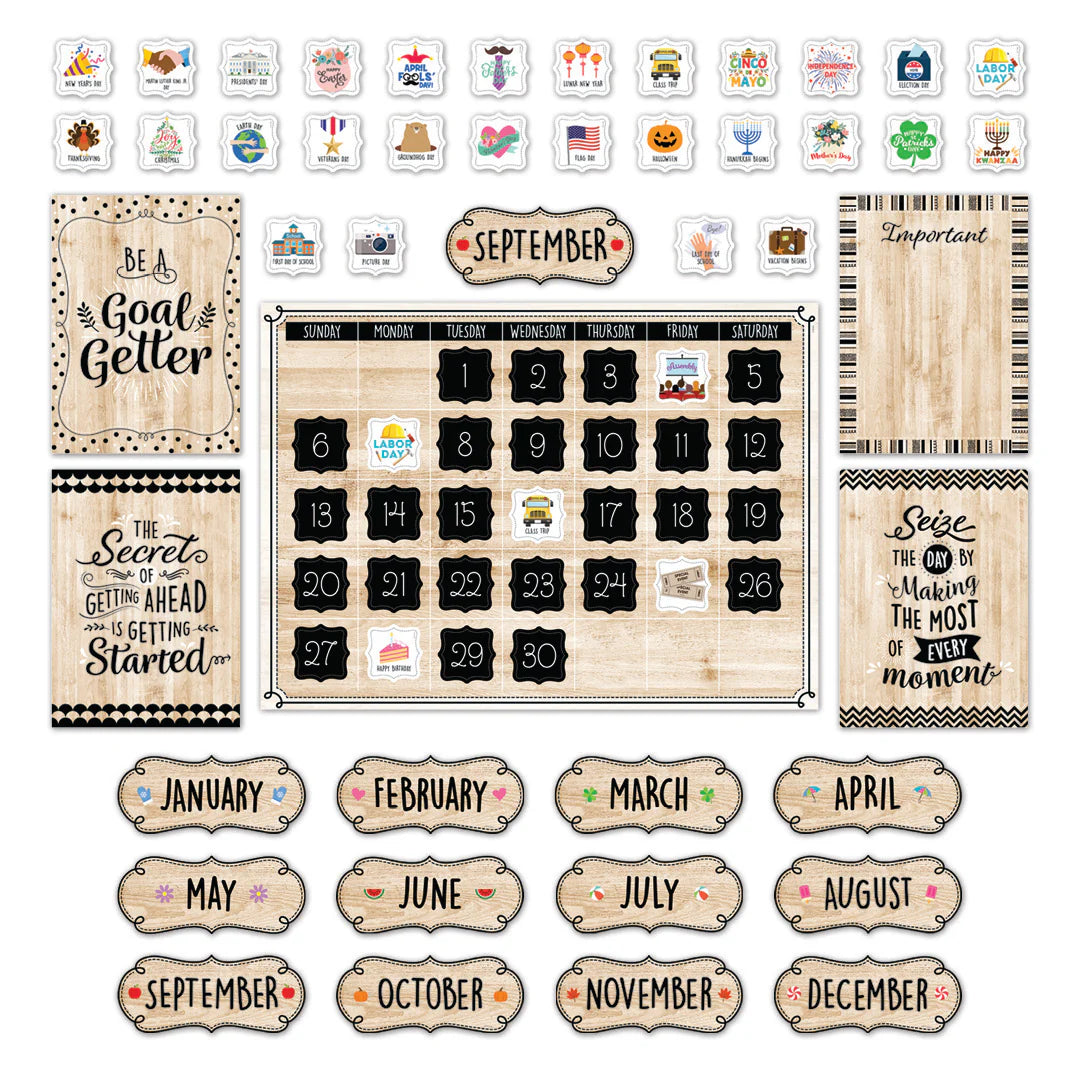 Core Décor Black, White, and Wood Calendar Set Bulletin Board