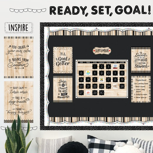 This charming calendar set features black and white core patterns on a neutral wood background and is perfect for classrooms in which students are already calendar literate. As students get older, a growing number of activities, responsibilities, and interests compete for their time, and it is increasingly on them to manage it all successfully. The Black, White, and Wood Calendar Set is designed for this age group and provides the perfect tool for introducing concepts such as planning ahead, creating agendas, and setting goals. The inspiring mini posters included help support these skills.