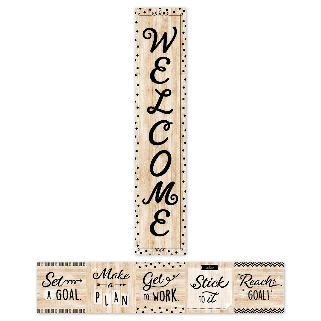 This versatile 2-sided banner features different messages on each side—Side 1: “Welcome” and Side 2: “Set a goal,” “Make a plan,” “Get to work,” “Stick to it,” and “Reach goal!” It can be used during back-to-school to welcome students and parents then flipped over to provide a strategy for success the rest of the school year.