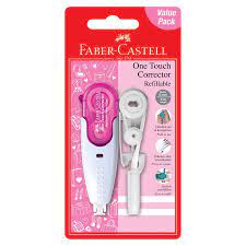 The cool design One Touch Corrector provides excellent coverage with smooth adhesion on all paper surfaces including fax paper. The Tape is 5 mm wide with a length of 6 meters, to guarantee a longlasting usage. The tape can be refilled in a quick and easy way, which helps to reduce waste. Retractable design enable the tape can be protected within the case when not in use.