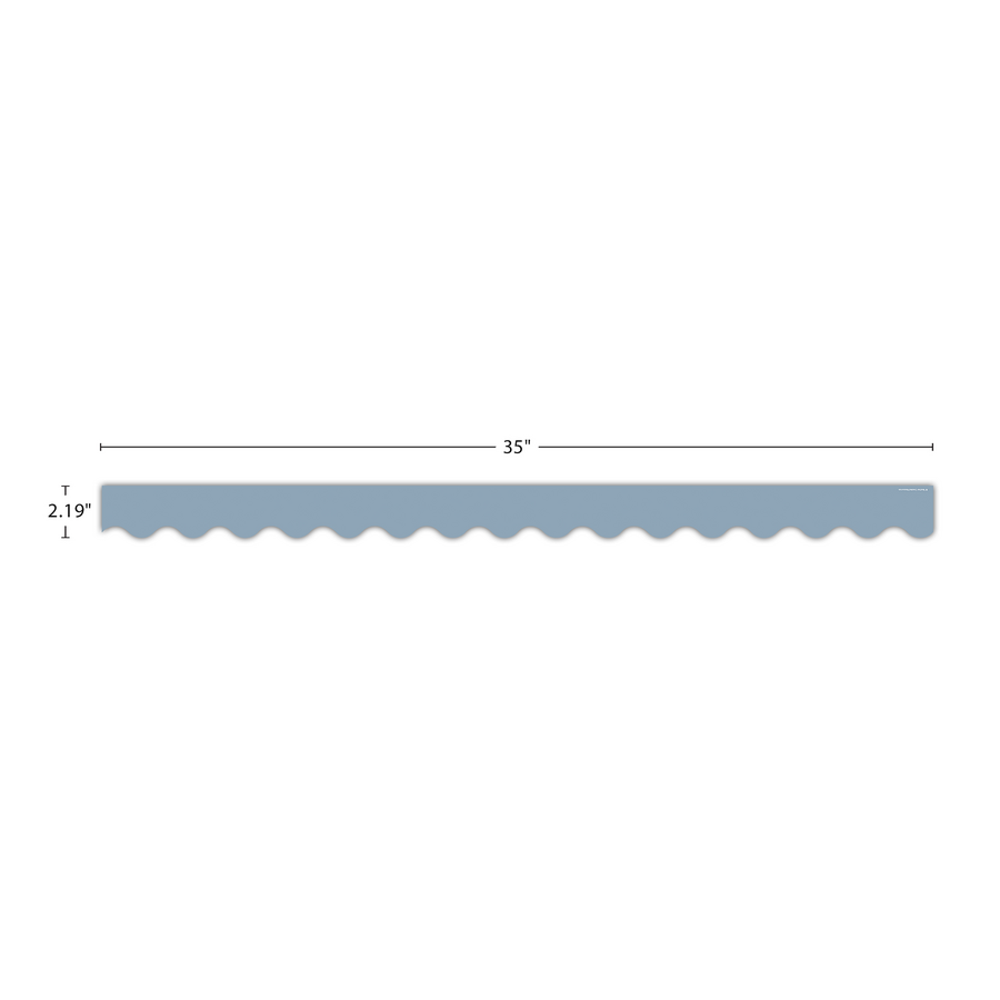 Use this cottage blue scalloped border trim to liven up your classroom! Create fresh looks for bulletin boards, windows, walls, and class projects. Mix and match with coordinating products (stickers, notepads, awards, etc.) for a classroom theme. Each pack has 12 pieces (2 3/16'' x 35'') for a total length of 35 feet of trim!