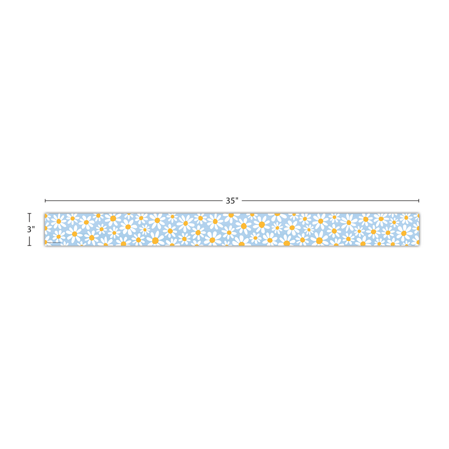Use this daisies border trim to liven up your classroom! Create fresh looks for bulletin boards, windows, walls, and class projects. Mix and match with coordinating products (stickers, notepads, awards, etc.) for a classroom theme. Each pack has 12 pieces (3'' x 35'') for a total length of 35 feet of trim!