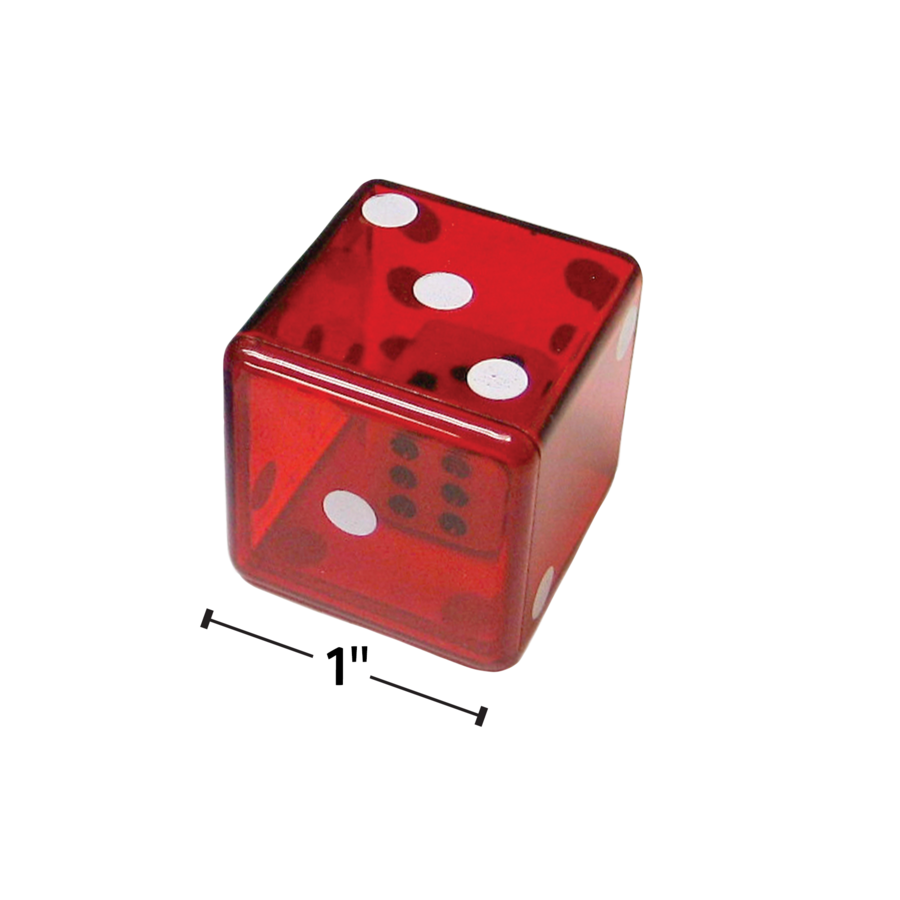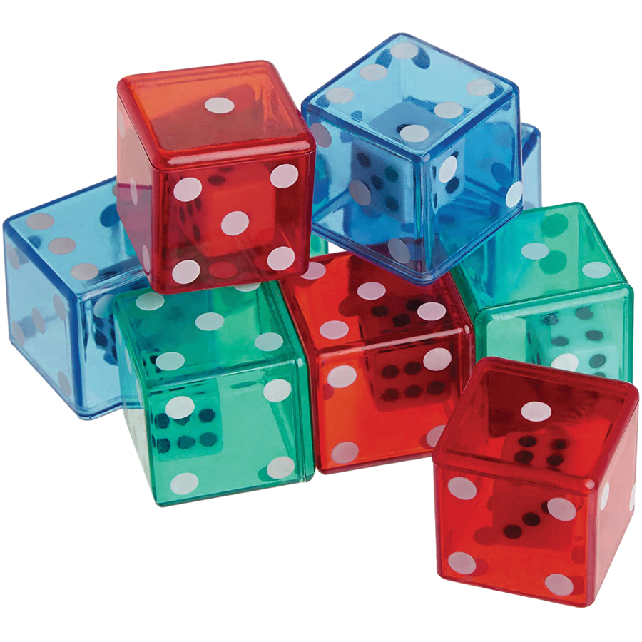 Learn about place value, math operations, and probability. Includes nine 1" dice: 3 red, 3 green, and 3 blue each with a white die inside. Comes in a resealable storage bag. Teaching tips are included.