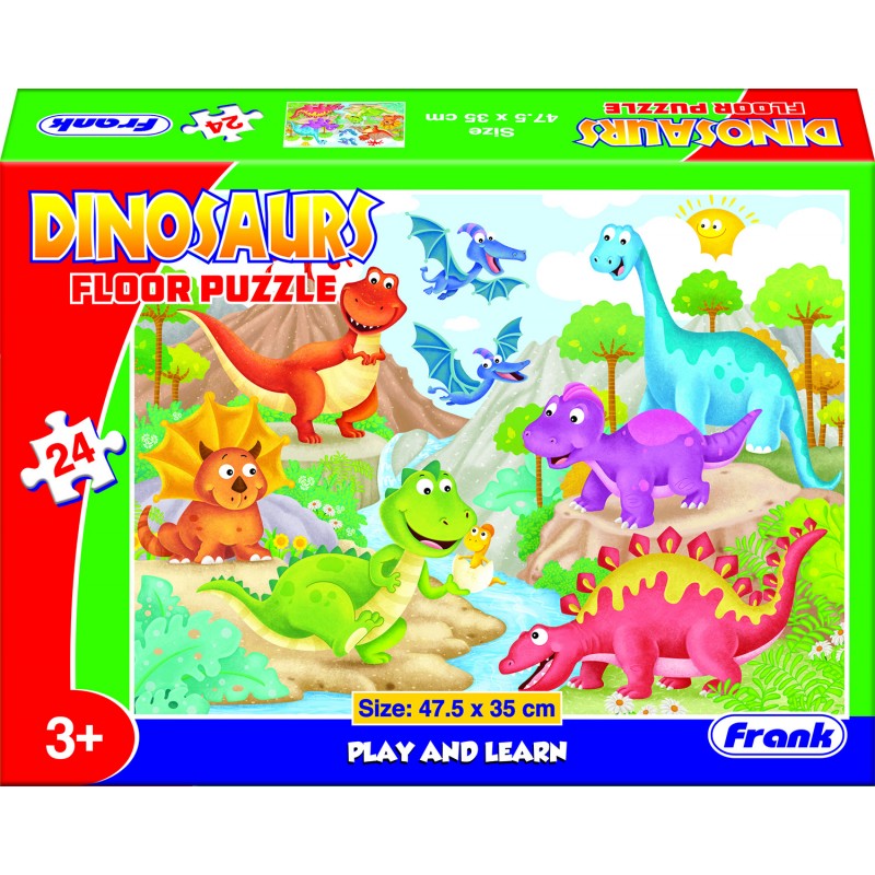 A colourful floor puzzle, depicting some of the dinosaurs, to stimulate the imagination and pique the curiosity of young children. Big pieces make it easy for children to handle them and assemble the puzzle.