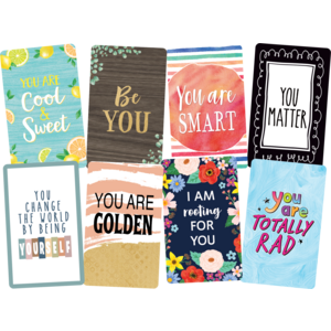 Hand out these Encouragement Cards to boost confidence, acknowledge accomplishments, or lift spirits. Each card is a positive affirmation that students can keep with them as reminders that they are cherished. Measures about 2 3/16'' x 3 1/2;''. 42 pieces per pack