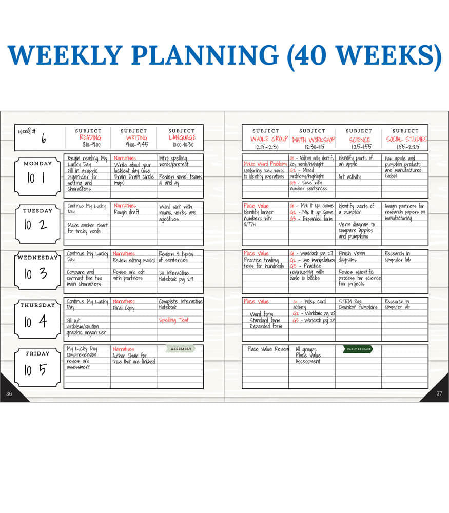 Carson Dellosa's Farmhouse Teacher Planner is the perfect way to manage lesson plans, daily tasks, monthly and yearly schedules, grades, and other important information to keep teachers organized.