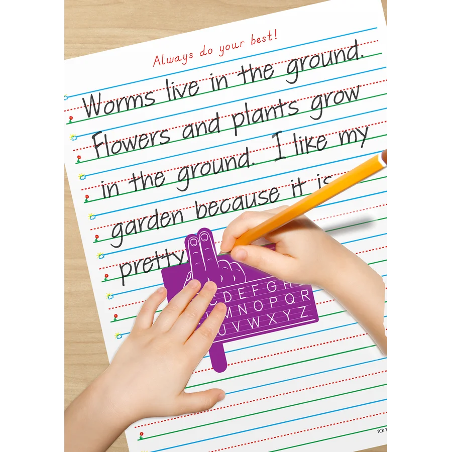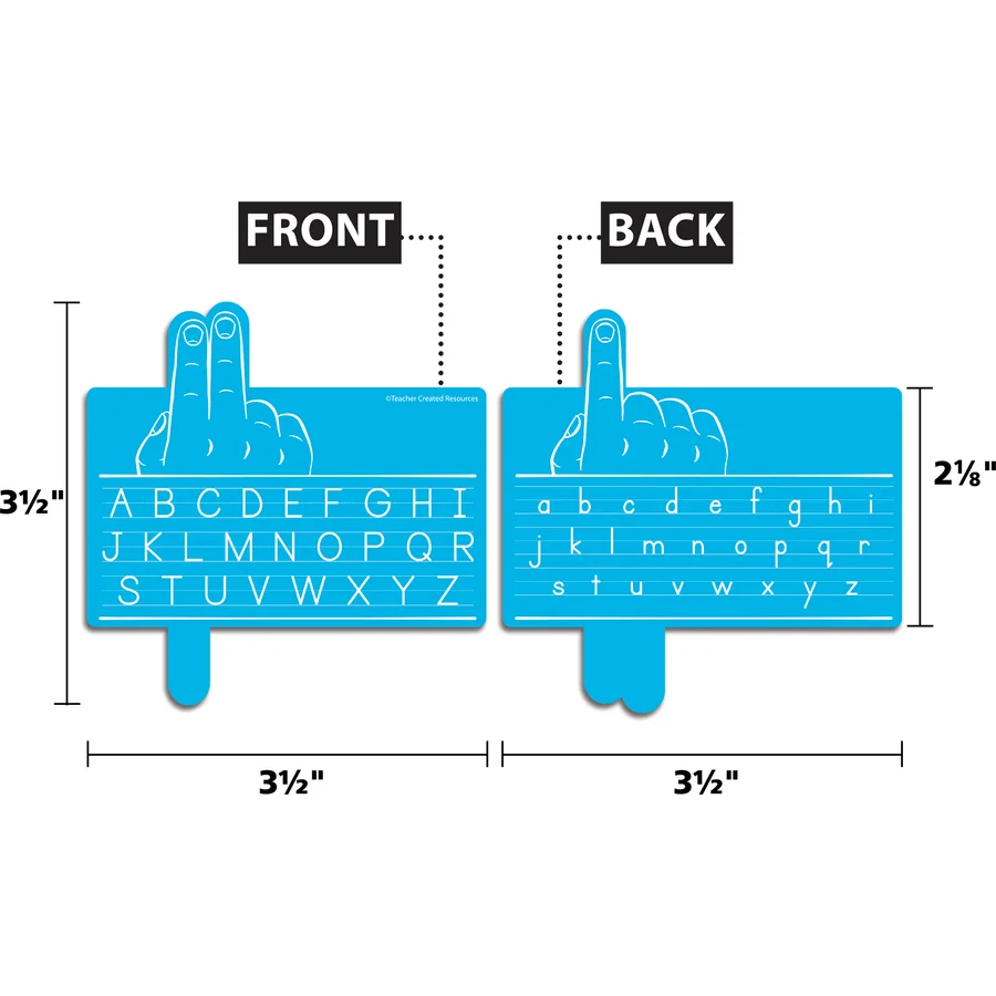 Finger spacers are a convenient tool to help children control letter spacing between words and sentences. Featuring single-finger and double-finger guides, children can practice word spacing effectively—using one finger between words and two fingers between sentences. Spacers are double-sided with uppercase letters on one side and lowercase letters on the other for quick reference.