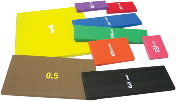 Learn about common fractions and their decimal equivalents. Nine color-coded squares representing 1 whole, 1/2, 1/3, 1/4, 1/5, 1/6, 1/8, 1/10, and 1/12. Decimal equivalents are on the back. Foam is lightweight, soft, quiet, and washable. Comes in a resealable storage bag. Teaching tips are included. 81 total pieces.