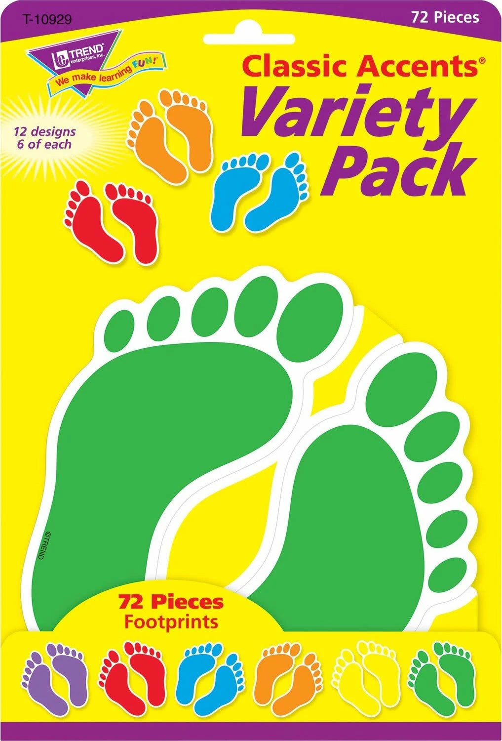 - Put your best foot forward toward fun displays! Red, blue, yellow, orange, purple, and green pairs.