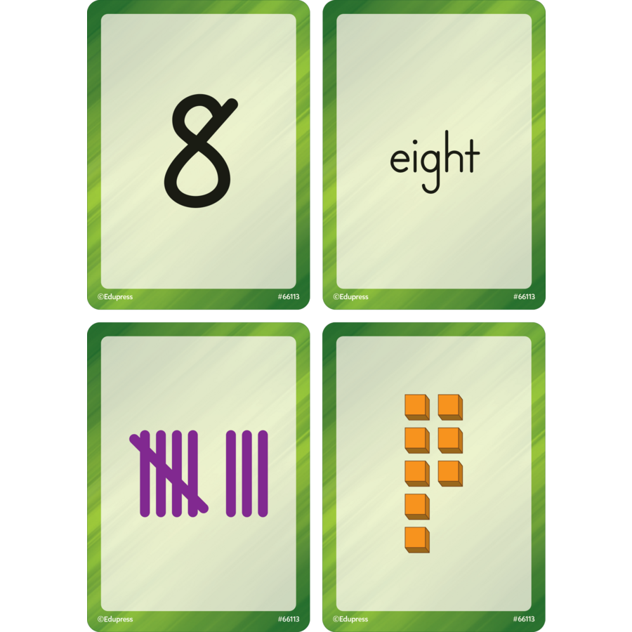 Four Score is a fun and fast-paced card game designed to help young learners practice and improve many mathematical, literacy, and life skills. Players are dealt 4 cards and try to pass off cards they don't need while collecting all 4 parts of a number's set. The 4 parts are the number in numerical form, in word form, in tally marks, and in base 10 blocks. The first player to collect all 4 parts wins the hand and 1 point. The first player to earn 4 points is the Four Score winner. Includes an instruction sheet and 80 playing cards. For 3–20 players. With this edition, players will quickly master mathematics by recognizing the similarities in four different representations of a number. Ages 6+