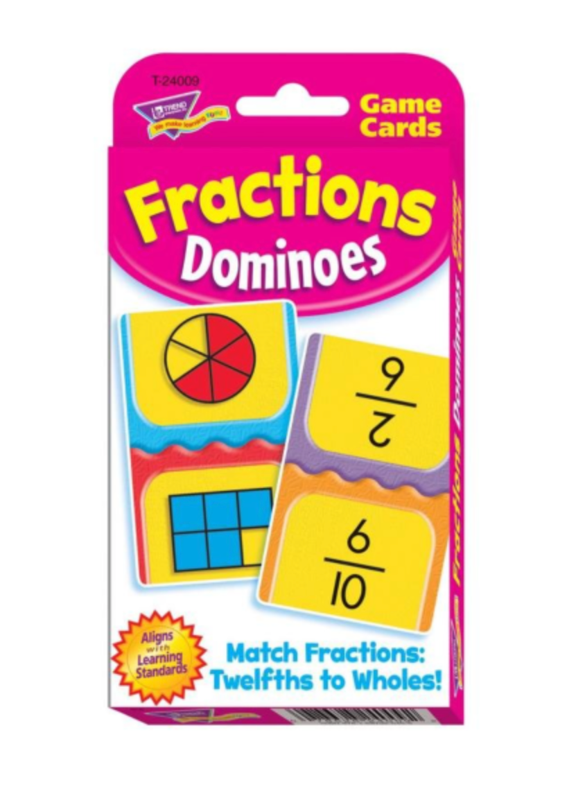 Play Fractions Dominoes with kids ages 9 and up during game nights or to reinforce distance education. It’s a great game for 1 to 6 players to have fun learning fractions at home, in classrooms and after-school programs – anywhere!
