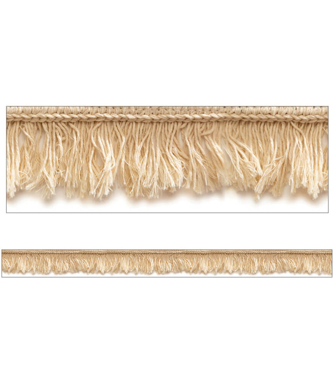 Give your bulletin board displays the perfect finishing touch with eye-catching bulletin board border trim. The Simply Boho Fringe Straight Borders pack includes 12 border strips, each measuring 3' x 3" for a total length of 36'.