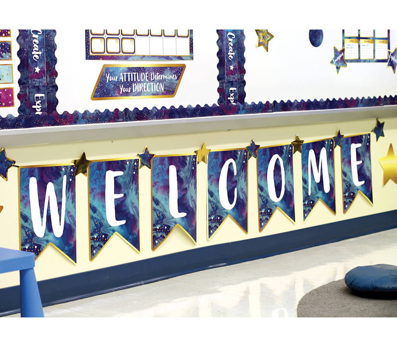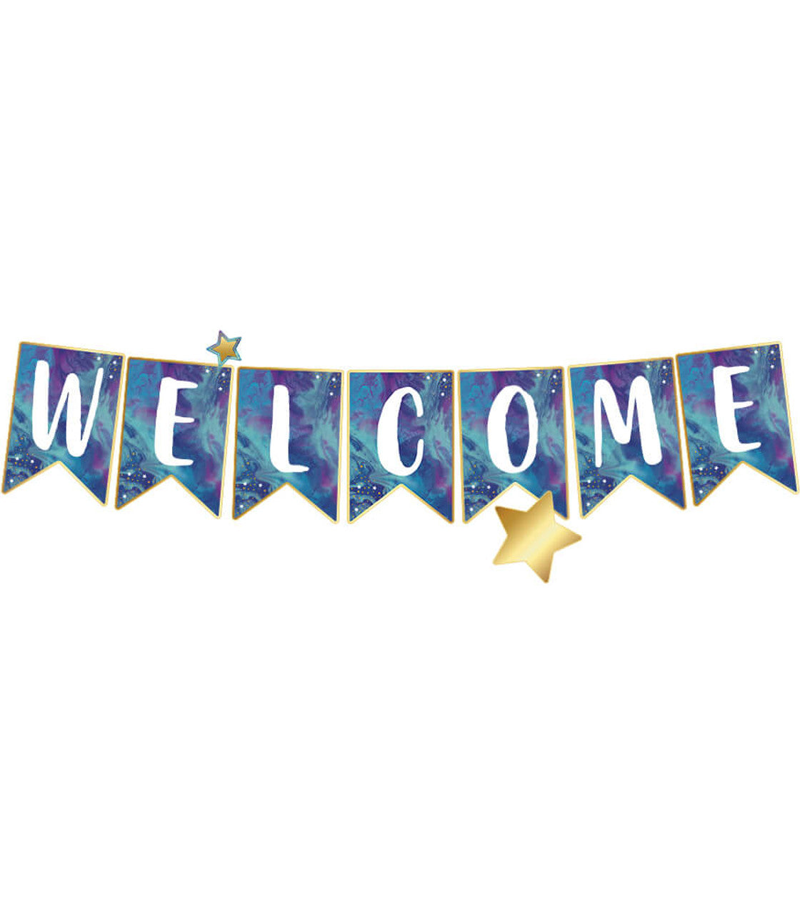 This attention-grabbing bulletin board letter set is essential for open houses, conferences, back-to-school occasions, and any event where you want visitors to feel welcome. To create a colorful and organized classroom, make sure to view coordinating Galaxy products.