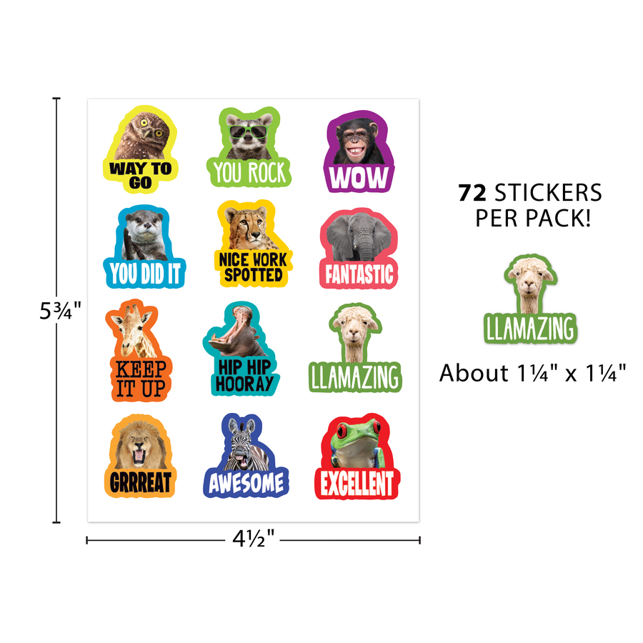 Unleash the wild side of creativity with our Go Wild Animal sticker pack! These stickers inject a burst of playful energy and positive vibes into any project. Each sticker captures the essence of untamed fun and measures approximately 1¼" x 1¼". 12 designs, 72 total stickers per pack.