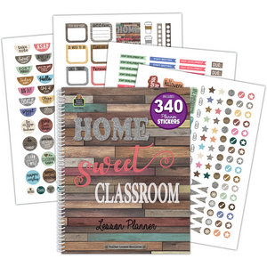 The lesson planner also includes a variety of colorful stickers to use throughout the year. Whether you need to prioritize the day's events, add weekly reminders, highlight something special, or simply provide a bit of inspiration these cheerful stickers will keep your lessons beautifully organized.