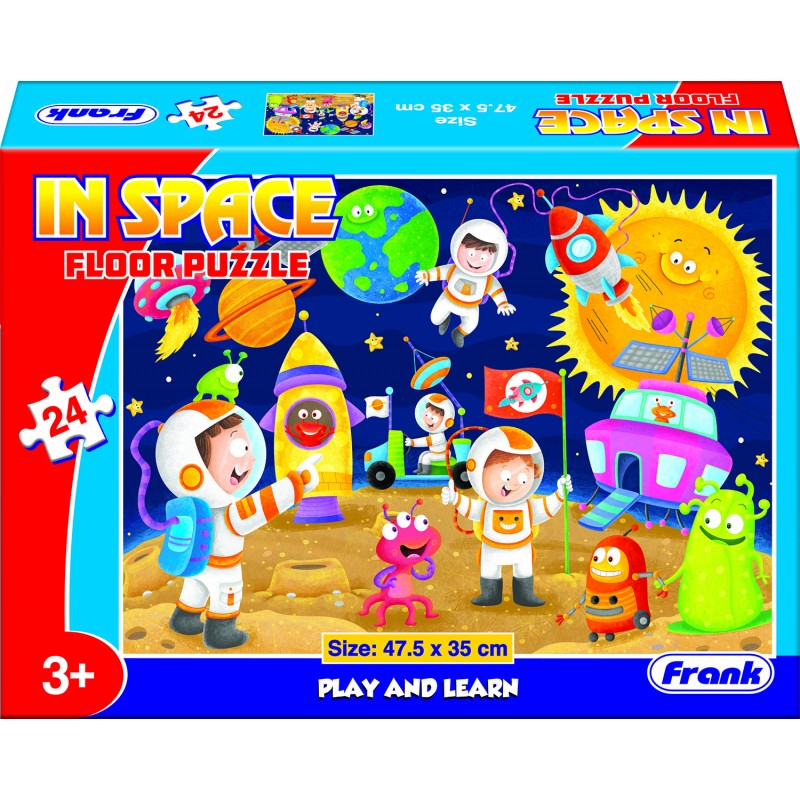 A colourful floor puzzle, depicting a wacky space scene, to stimulate the imagination and pique the curiosity of young children. Big pieces make it easy for children to handle them and assemble the puzzle.