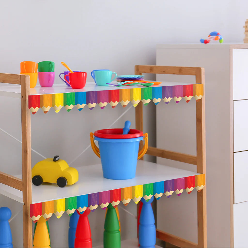 Use this colorful Jumbo Color Pencils EZ Border in a crafting area, an activities center, or to add color to any bulletin board! These new EZ borders come in smaller strips, which are easier to manage and store. Each package comes with enough borders to complete 2 full bulletin boards.