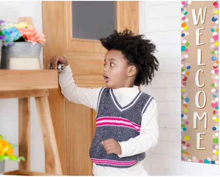 This festive and versatile 2-sided banner features a different message on each side—Side 1: “Welcome” and Side 2: “Make today the day to learn something new.” It can be used during back-to-school to welcome students and parents then flipped over for a motivational message the rest of the school year.