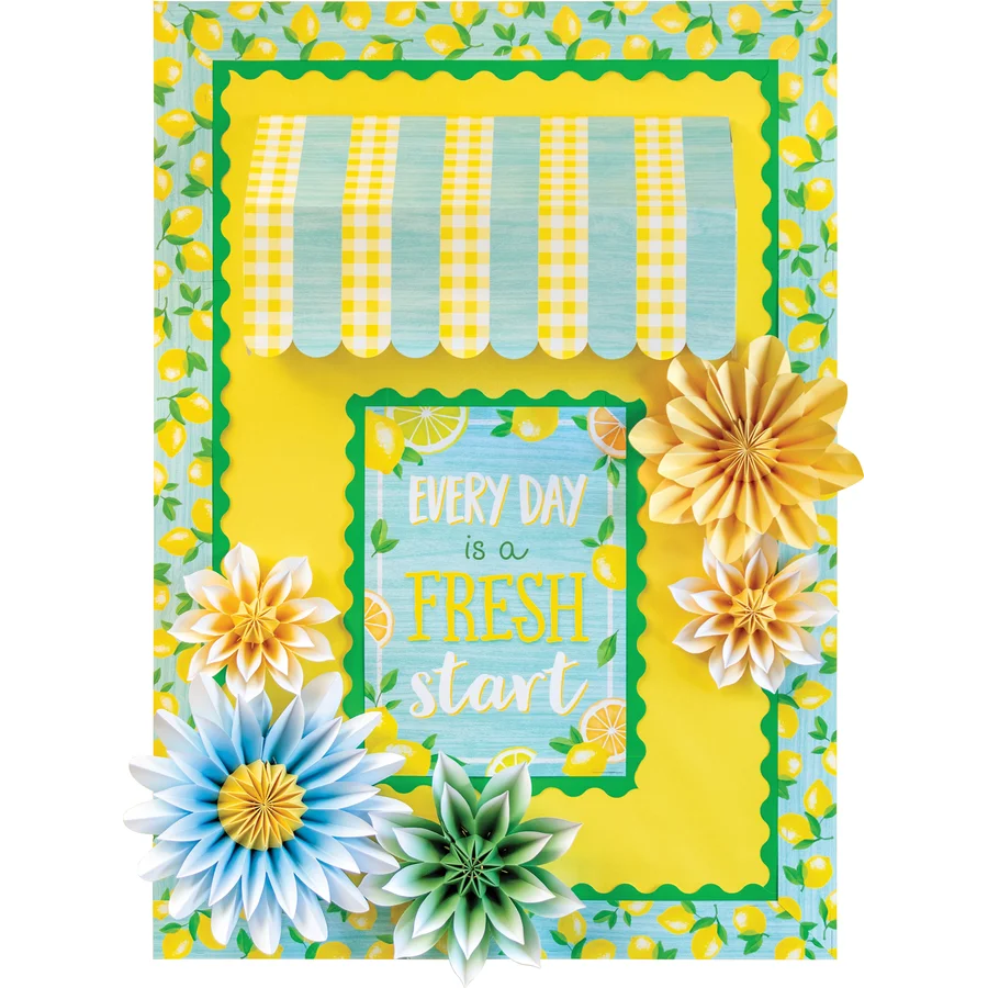 Brighten up your classroom with this lemon yellow color. This revolutionary material makes creating beautiful bulletin board backdrops quick and easy! The lightweight material is simple to hang—no more struggling with paper that wrinkles and tears. Attach border trim, accents, posters, and student work with staples or tape and remove without ripping or leaving conspicuous holes. The durable write-on/wipe-off surface can be used again and again. Roll measures 4' x 12'.