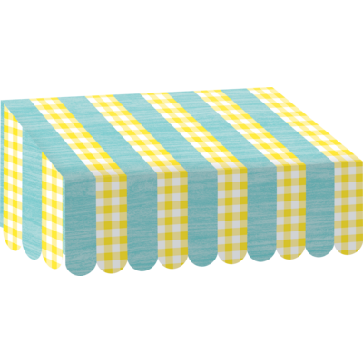 Give your classroom a glamorous makeover with this fancy Lemon Zest Awning. Mix and match your favorite patterns and colors to create the perfect themed classroom. Hang this sturdy awning over your bulletin boards and entryways, organize work areas, or make fun learning corners. Three reinforced notches on the back to hang easily. Measures 24"wide x 12½" tall.