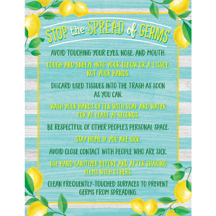 Lemon Zest Stop the Spread of Germs Chart