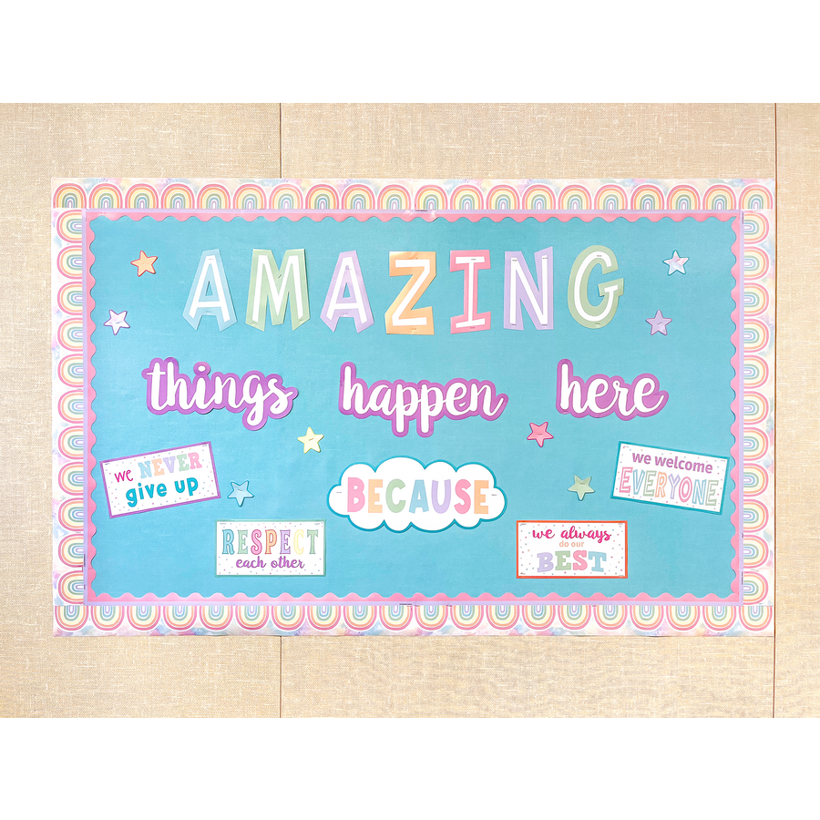 Create the perfect bulletin board with this light blue hue. This revolutionary non-woven fabric makes creating beautiful bulletin board backdrops quick and easy! The lightweight material is simple to hang—no more struggling with paper that wrinkles and tears. Attach border trim, accents, posters, and student work with staples or tape and remove without ripping or leaving conspicuous holes. The durable write-on/wipe-off surface can be used again and again. Roll measures 4' x 12'.