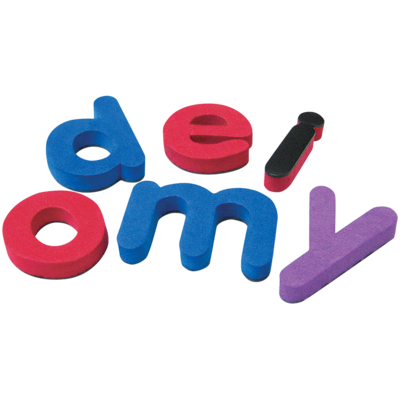 Practice alphabet-related skills with 55 lowercase letters measuring 1" to 1-1/4". 41 blue consonants, 13 red vowels, and 1 purple y. Lightweight, washable foam coupled with magnetic backing makes the letters practical for any setting. Comes in a resealable storage bag. Teaching tips are included.