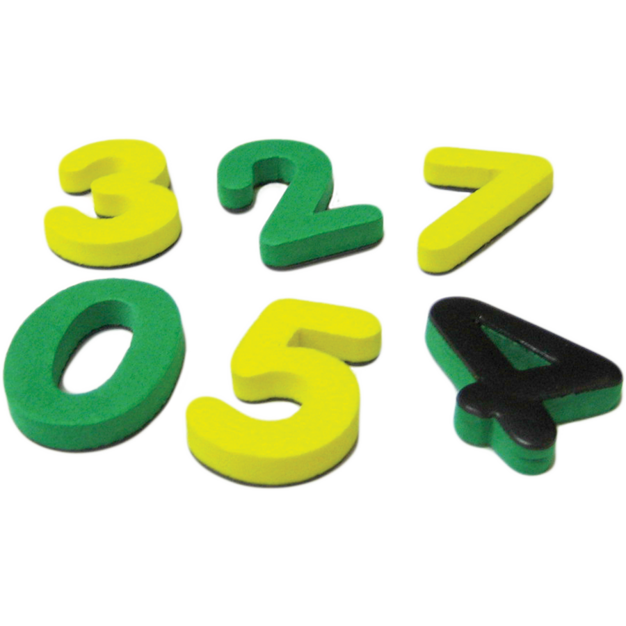 Practice math-related skills with 60 numbers measuring 1-1/4" each . Includes 6 each of numbers 0-9, 30 yellow (odd) and 30 green (even). Lightweight, washable foam coupled with magnetic backing makes the letters practical for any setting. Comes in a resealable storage bag. Teaching tips are included.