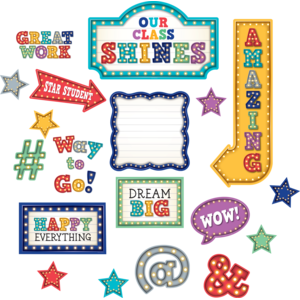 Help your students celebrate their accomplishments every day with this bright and colorful bulletin board display. Encouraging words and phrases, stars and other accent pieces, and a place to celebrate a star student are included. Header piece measures about 18" x 10¾". 54 total pieces.