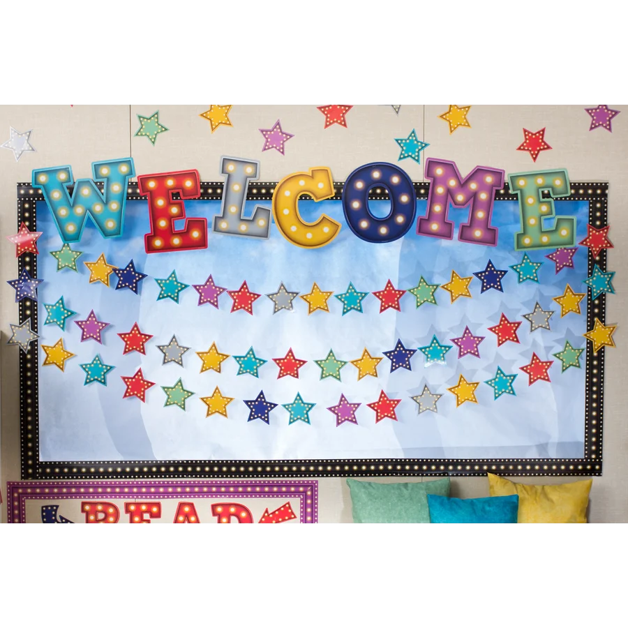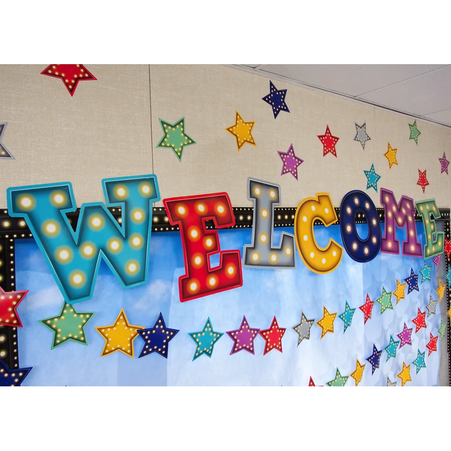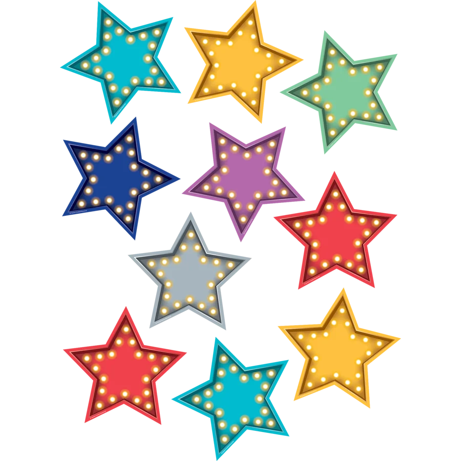 Lights, camera, learning! Make every student feel like a star with these classroom decorations. Featuring bright, modern colors and twinkling lights, these accents are ideal for styling bulletin boards, labeling bins and desks, and more. 30 accents per pack. Each piece measures about 6”.
