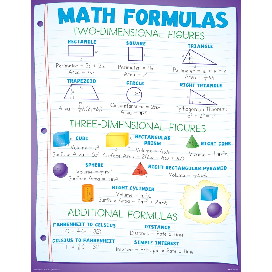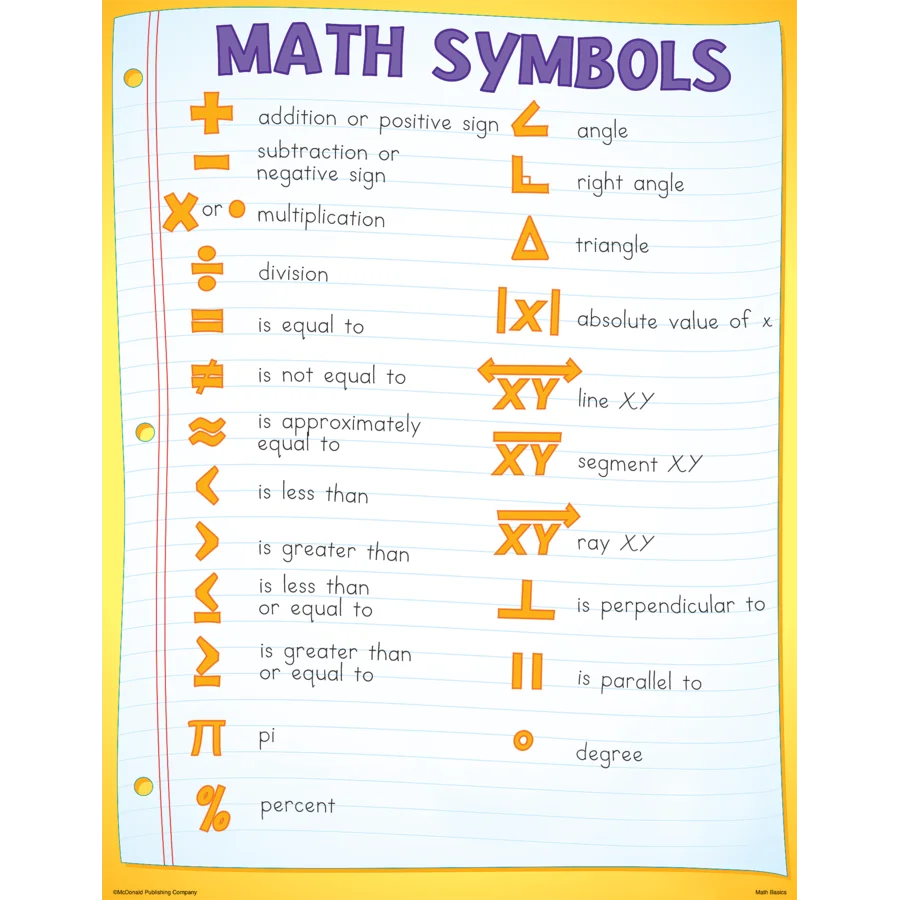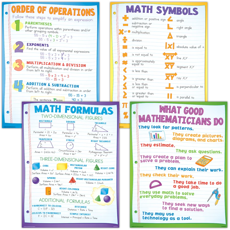 We've taken our best-selling basic math concepts and combined then into one that’s sure to become a teacher favorite. The concepts include the order of operations, math symbols, math formulas, and what good mathematicians do. Includes 4 posters. Each poster measures 17" x 22".