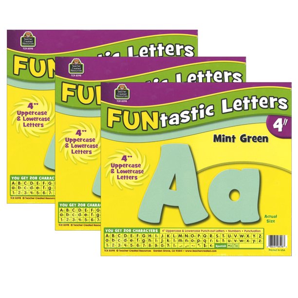 Use these Mint Green letters to create bulletin boards, classroom centers, signs, banners, and other displays. They punch out easily and are coated for durability. The colors and designs coordinate with popular decorative products from Teacher Created Resources.