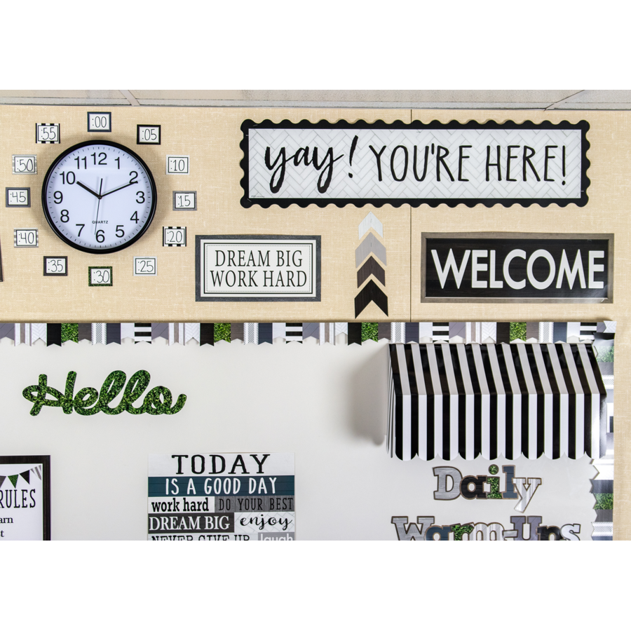 Welcome, inspire, and encourage students with this chic herringbone banner! Folds for easy storage and then unfolds to 8" x 39".