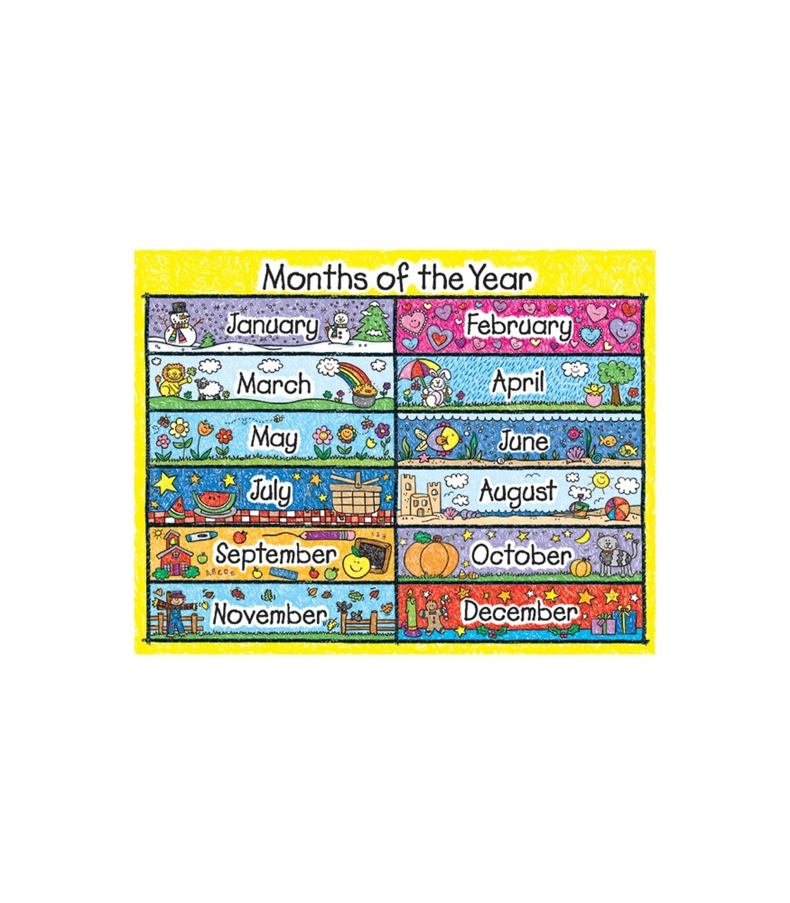The Months of the Year chartlet measures 17" x 22" and features all 12 months. You can display this chart for students anywhere in your learning environment for a year-round reference.