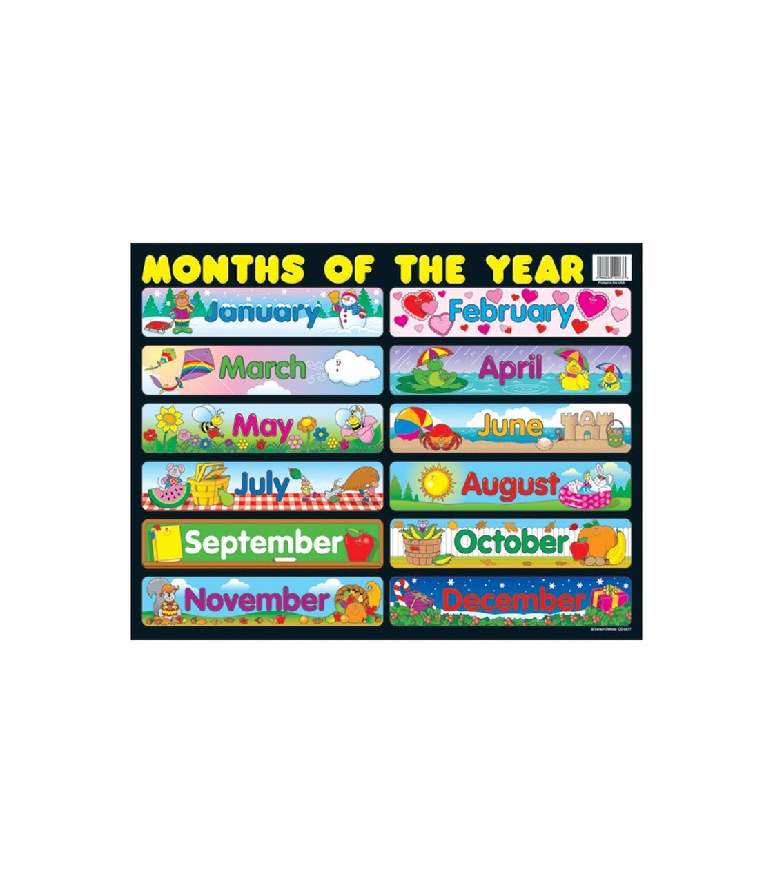 The Months of the Year chartlet measures 17" x 22" and features all 12 months. You can display this chart for students anywhere in your learning environment for a year-round reference.
