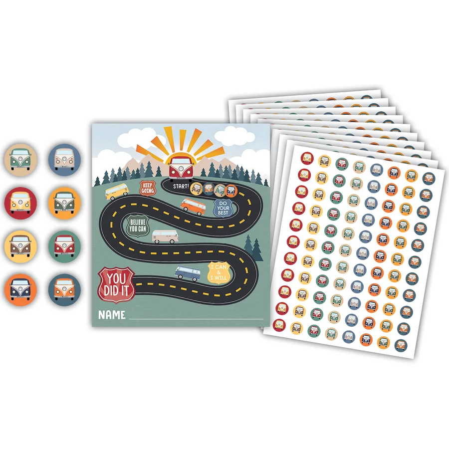 Celebrate and inspire students’ progress with these engaging reward trackers! With a fun road trip theme, they're perfect for recognizing achievements and boosting enthusiasm. The stickers, featuring vintage vans, are acid-free and lignin-free.