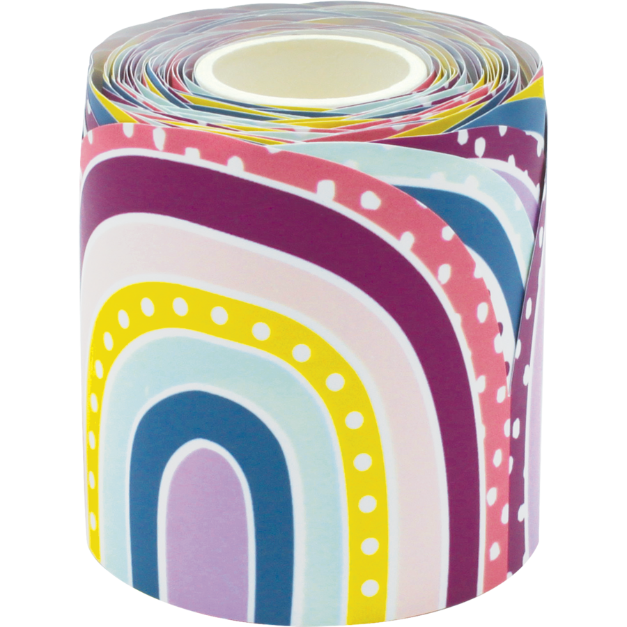 Use this rolled border trim to liven up your classroom! Create fresh looks for bulletin boards, windows, walls, and class projects. Mix and match with coordinating products for a classroom theme. 50 foot continuous roll of vibrant border trim made of durable paper. Cut each border to your desired length. The rolled border measures 3" x 50".